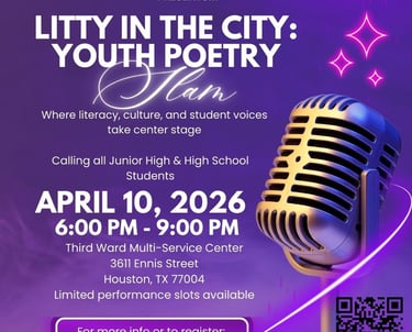 C.O.O.L. Poetry Youth Slam is a high-energy, culturally conscious event designed to celebrate student voice, creativity, and confidence through the power of poetry. Whether you are a student ready to perform, a teacher encouraging young writers, or a parent supporting a rising voice, this is your opportunity to be part of an experience where literacy is fun, expressive, and empowering. Students will perform original, memorized poetry in a supportive community space that uplifts culture, builds leadership, and amplifies youth voices. If you’ve got a story — we want to hear it.